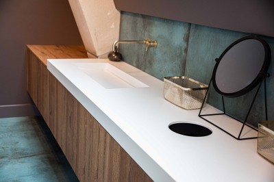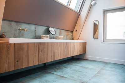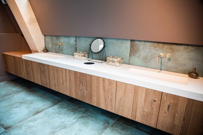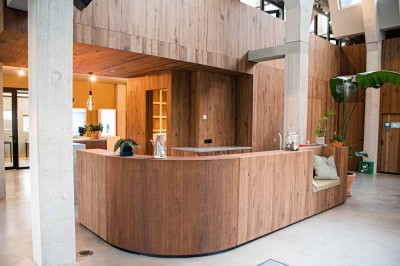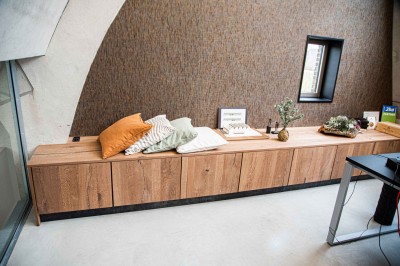 Voor het interieur van hun nieuwe pand schakelden Harmen en Elisabeth Sikkema van Fortop Winterieurs in. Elisabeth vertelt: ‘We kenden Winterieurs al een beetje, want Harm heeft ook al eens meubels gemaakt voor ons toen we op de beurs stonden. En hij heeft ook onze stand opgebouwd. Bij die klus viel ons al op dat hij netjes en intelligent werkt, maar ook dat hij heel goed meedenkt. Dus toen we op zoek gingen naar een interieuraannemer, kwam zijn naam al vrij snel op tafel.’