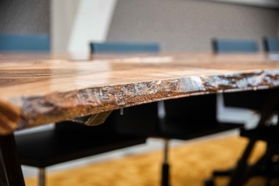 Wat Harm anders maakt dan andere vakmannen en -vrouwen in zijn vak, is volgens de eigenaren van Fortop zijn lef: ‘Hij is niet bang voor een uitdaging. Zo wilden we graag een grote boomstamtafel in epoxy. Daarvan lieten we Harm een afbeelding zien. Hij had nog nooit eerder zo’n tafel gemaakt vertelde hij, maar wilde die uitdaging graag aangaan. Hij gaat heel intelligent met opdrachten om, denkt daar rustig over na en schakelt waar nodig andere specialisten in. En uiteindelijk lukt het hem. Die tafel staat er nu. In epoxy. En hij is prachtig, net als de rest van ons interieur.’