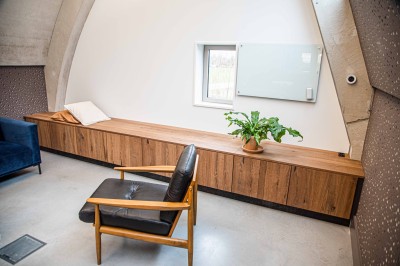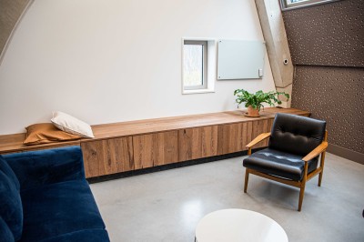 ‘Het inrichten van ons nieuwe pand was een grote klus met veel timmerwerk’, gaat Elisabeth verder. ‘Een avontuur dat we toevertrouwden aan Harm. Hij luisterde naar onze wensen, dacht mee over de praktische kant van de inrichting en ging vervolgens de uitdaging aan. Hij heeft wanden afgewerkt, deuren bekleed en meubels gemaakt. Ja, hij heeft echt hoogstaand timmerwerk afgeleverd. Daar zijn we heel blij mee!’
